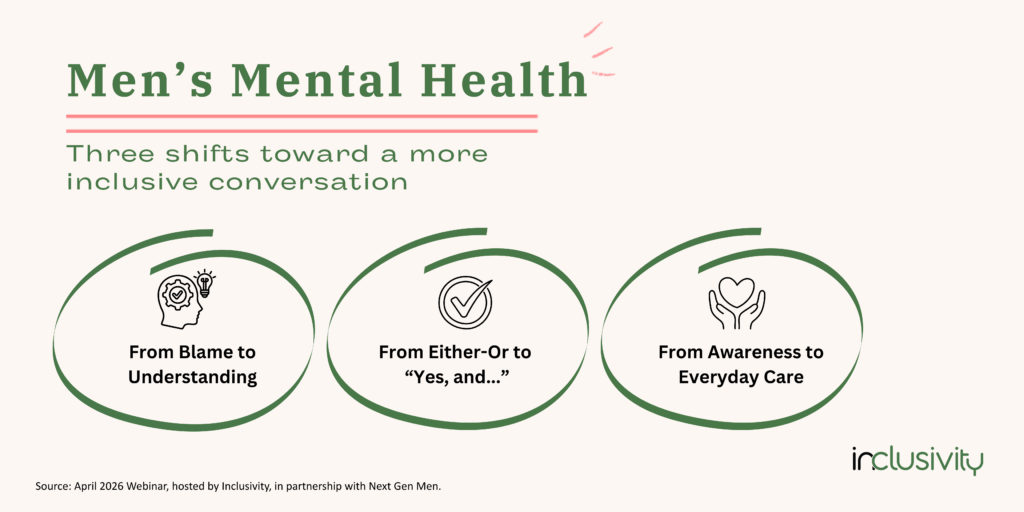 When we shift from blame to understanding, from either-or to yes-and, and from crisis awareness to everyday care, we create a more inclusive conversation about masculinity and mental health. One that reduces polarization, strengthens connection, and supports boys and men while continuing to advance equity for everyone.